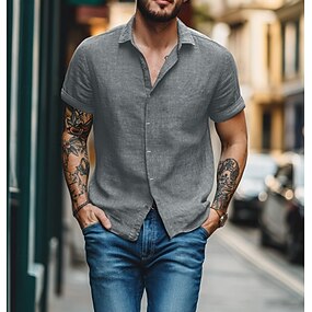 Per uomo Camicia di lino Camicia Estiva Abbigliamento da spiaggia Camicia con Bottoni Semplice Vacanza Feste Blu Nero Bianco Rosa Manica Corta Collo ripiegato Estate Abbigliamento