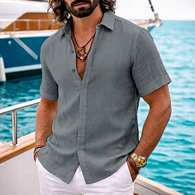 Per uomo Camicia di lino Camicia Estiva Abbigliamento da spiaggia Camicia con Bottoni Tinta unica Vacanza Crociera Bianco Blu Grigio Manica Corta Collo ripiegato Estate Primavera Abbigliamento