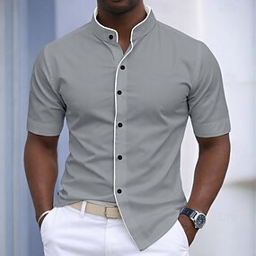 Per uomo Camicia Camicia elegante Camicia non stiro Camicia con Bottoni Tinta unica Quotidiano Affari Nero Bianco Grigio Manica Corta Colletto alla coreana Estate Abbigliamento Blocco di colore