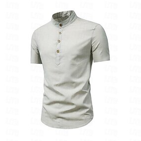Per uomo Camicia di lino Camicia con colletto alla coreana Camicia popover Camicia Estiva Abbigliamento da spiaggia Camicia casual Semplice Vacanza Casuale Nero Bianco Rosso Cachi Manica Corta