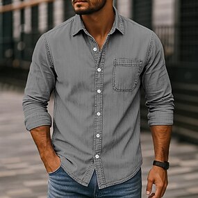 Per uomo Camicia Camicia casual Camicia con Bottoni Camicia cargo Camicia lavata con acido Nero Verde chiaro Vino Blu Viola Manica Lunga Semplice Bavero Casuale Quotidiano Puro Abbigliamento Vintage