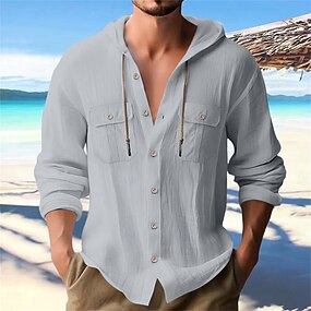 Per uomo Camicia camicia di lino Camicia estiva Abbigliamento mare Liscio Da mare Curise Bianco Blu Marrone Verde Manica lunga Con cappuccio Primavera estate Abbigliamento
