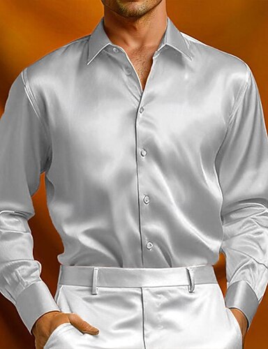Per uomo Camicia Come la seta Camicia in raso Camicia elegante Camicia casual Camicia con Bottoni Semplice Matrimonio Abbigliamento casual alla moda Nero Bianco Giallo Rosa Manica Lunga Bavero