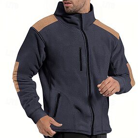 Per uomo Giacca in Pile Formale Casa Calore Termico Tasca Puro Autunno Tinta unica Attivo Neutro Collo Alto Regolare Blu Verde Beige Grigio Giacca