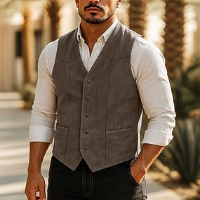 Per uomo Gilet in finta pelle scamosciata Gilet occidentale Gilet Formale Matrimonio Vacanza Affari Moda Cowboy Primavera Autunno Tasca Classico Bottoni 100% poliestere finto camoscio Confortevole