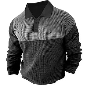 Per uomo Blocco di colori Geometrico Polo Manica Lunga Colletto Mao Casual Vacanza Athleisure Casual Quotidiano Stampa 3D Primavera Autunno Blu Marrone Grigio