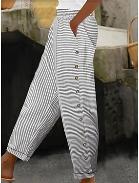 Per donna Finto cotone e lino Pantaloni Estivi Essenziale Casual Lunghezza intera Vita Alta A righe Tasca Elastico in vita Stampato Comodo All'aperto Confortevole Streetwear Abbigliamento quotidiano