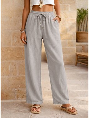 Per donna Pantaloni in cotone e lino Pantaloni Estivi Pantaloni Vacanza Essenziale Casual Quotidiano Lunghezza intera Naturale Semplice Coulisse Tasca Frontale Comodità Traspirabilità Confortevole