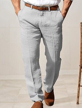 Per uomo Pantaloni di Lino Pantaloni Pantaloni Eleganti Pantaloni Estivi Tasca Gamba Dritta Semplice Comodità Traspirante Lunghezza intera All'aperto Affari Ricevimento di matrimonio Retrò Vintage