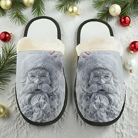 pantofole vintage da uomo a forma di Babbo Natale: calde scarpe da interno foderate in peluche con classica stampa natalizia, comode calzature invernali per la casa e regali per le feste