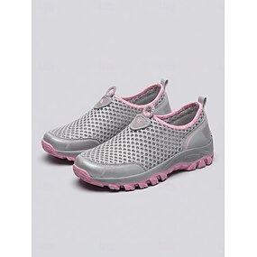 Scarpe da trekking traspiranti da donna grigio chiaro: sneakers leggere slip-on in mesh con suola antiscivolo, ideali per escursionismo, trekking, viaggi, campeggio e passeggiate all'aria aperta.