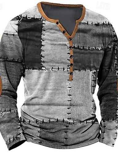 Per uomo Patchwork Maglietta Maglia Henley Manica Lunga Vintage Designer Elegante All'aperto Casuale Quotidiano Primavera & Estate Tutte le stagioni Viola Verde Cachi Caffè Grigio Henley Maglietta