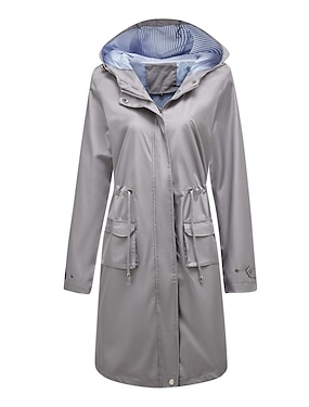 Per donna Cappotto Impermeabile Confortevole Cerniera completa Coulisse Moda Stile da Strada Semplice All'aperto Casual Quotidiano Lungo Con Cappuccio Vestibilità regolare Manica Lunga Capispalla