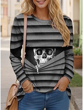 T Shirt da donna Teschi Grafica Moda Vintage Causale Manica Lunga Collo Girotondo Magliette Regolari Giorno del Weekend Stampa Rossa Blu Viola Verde Grigio Autunno Inverno