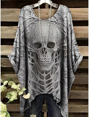 Blusa da donna grafica con teschio vintage quotidiana casual maniche corte a palloncino collo a giro tops lunghi quotidiani ferie nera bianca rosa rossa viola primavera autunno
