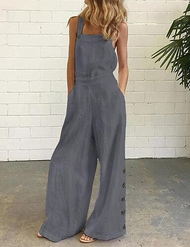 Per donna Normale Tuta Streetwear Tinta unica Senza maniche Squadrata Bottoni Tasche Strada Giornaliero Standard Rosso Blu Verde Estate