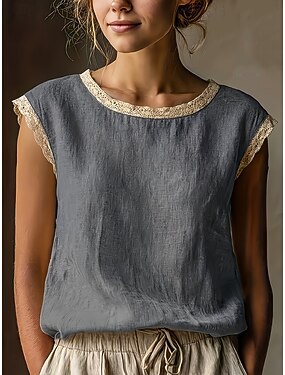 Per donna Camicia Misto cotone Top estivi Semplice Quotidiano Elegante Essenziale Mezza Manica Girocollo Top Regolari Quotidiano Lavoro Ferie Blu Giallo Grigio Primavera Autunno