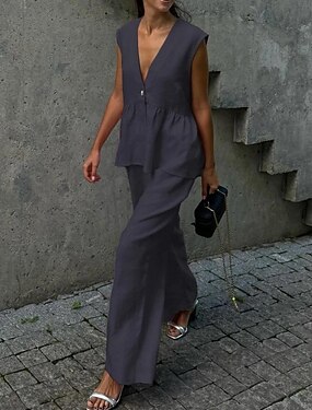 Per donna Camicia Set ispirati al lino Blusa Finto cotone e lino Semplice Moderno Casual Senza Maniche Scollo a V Top Regolari Quotidiano Ferie Nero Rosa Verde militare Beige Grigio Estate