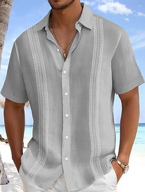 Per uomo Camicia di lino Camicia Guayabera Abbigliamento da spiaggia Camicia con Bottoni Testurizzato Vacanza Casuale Bianco Blu Verde Grigio Manica Corta Collo ripiegato Estate Primavera