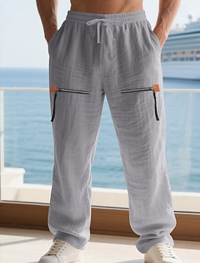 Per uomo Pantaloni di Lino Pantaloni Pantaloni Estivi Pantaloni Larghi Coulisse Elastico in vita Tasca con cerniera Semplice Comodità Traspirante Lunghezza intera Casuale Quotidiano Ferie Vacanza Moda