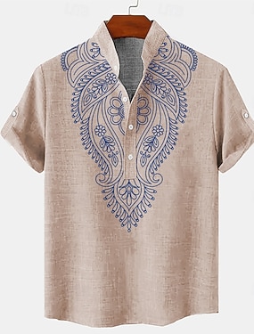 Per uomo Etnico Camicia di lino Camicia Estiva Manica Corta Casual Tribale Vacanza Quotidiano Estate Primavera Collo alla coreana Stampato Verde Cachi Grigio