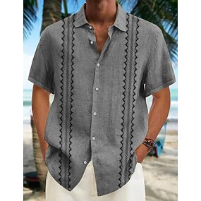 Per uomo Camicia di lino Camicia casual Camicia in cotone e lino Camicia con Bottoni Motivo Vacanza Streetwear Bianco Blu marino scuro Azzurro cielo Albicocca Manica Corta Bavero Estate Abbigliamento