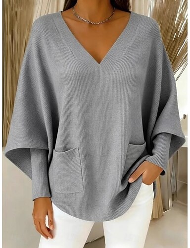 Per donna Felpa Maglione Elegante Moda Carino Tinta unica Scollo a V Lavorato a maglia Manica Lunga Top Regolari Maglia All'aperto Casa Quotidiano Blu Rosa Autunno Inverno