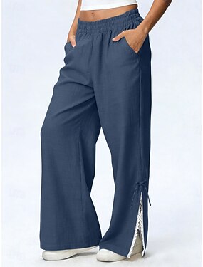 Per donna Gamba larga Chinos Pantaloni Estivi Streetwear Casual Lunghezza intera Vita media Semplice Tasca Fascia Elastica Spacco Comodo Comodità Inelastico Quotidiano All'aperto Streetwear Grigio