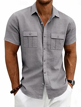 Per uomo Camicia Camicia di lino Camicia Estiva Camicia da Spiaggia Semplice Vacanza Casuale Bianco Verde militare Grigio scuro Azzurro Manica Corta Colletto Estate Primavera Abbigliamento Coulisse