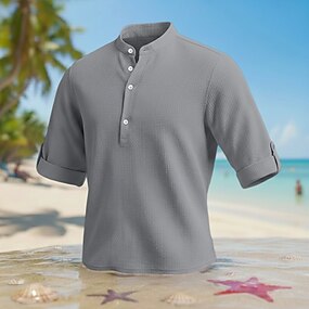 camicia da uomo camicia di lino camicia estiva camicia casual camicia boho semplice casual quotidiano blu nero bianco rosa manica lunga collo alla coreana estate primavera &abbigliamento autunnale