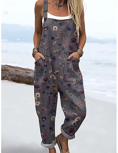 Per donna Tuta Attivo Floreale Senza Maniche Senza maniche Dritto Collo quadrato Tasca Stampato Quotidiano Vacanza Vestibilità comoda Blu Bianco Giallo Estate