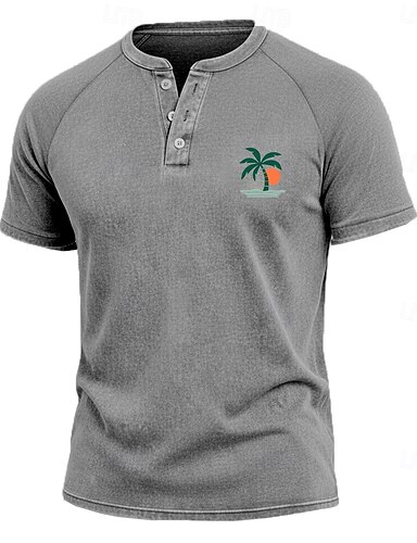 Per uomo Vintage Lavato Camicia di cotone Top Henley Camicia lavata con acido Manica Corta Attivo Vintage Designer Casuale Quotidiano All'aperto Primavera & Estate Estate Primavera Blu chiaro Viola