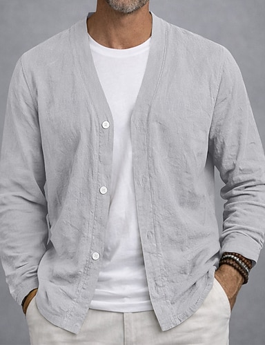 Per uomo Camicia di lino Camicia Estiva Abbigliamento da spiaggia Camicia con Bottoni Cardigan Semplice Casuale Vacanza Blu Nero Bianco Cachi Manica Lunga Scollo a V Estate Primavera Abbigliamento
