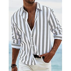 Per uomo Camicia Camicia Estiva Abbigliamento da spiaggia Camicia con Bottoni Rosa chiaro Nero Rosa Azzurro cielo Grigio scuro Manica Lunga A righe Colletto Vacanza Feste Abbigliamento Moda Tempo