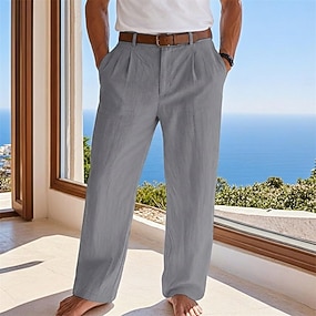 Per uomo Pantaloni di lino Pantaloni Pantaloni estivi Pantaloni da spiaggia A cordoncino Vita elastica Gamba dritta Liscio Comfort Traspirante Lunghezza intera Esterno Per eventi Spiaggia Festivit