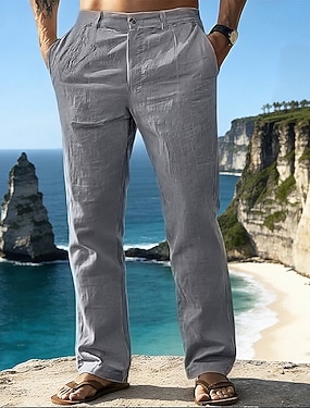Per uomo Pantaloni di Lino Pantaloni Estivi Pantaloni da Spiaggia Coulisse Elastico in vita Gamba Dritta Semplice Comodità Traspirante Lunghezza intera Casuale Quotidiano All'aperto Moda Stile