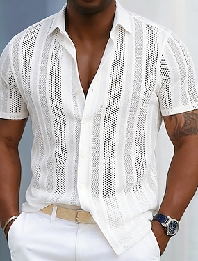 Per uomo Camicia Camicia Estiva Camicia con Bottoni Camicia Jacquard Cardigan Blu Nero Bianco Verde Kaki Manica Corta A righe Testurizzato Moda Bavero Casuale Abbigliamento quotidiano Foro