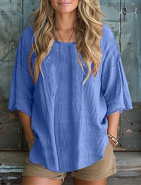 Per donna Camicie di cotone e lino Semplice Quotidiano Elegante Casual Manica 3/4 Girocollo Top Regolari Lavoro Quotidiano Ferie Giallo Blu Grigio Primavera Autunno