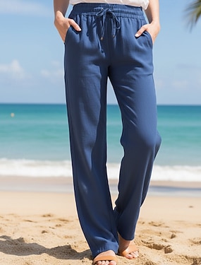 Per donna Finto cotone e lino Pantaloni Eleganti Pantaloni Estivi Casual Lunghezza alla caviglia Naturale Semplice Tasca Elastico in vita Comodo All'aperto Confortevole All'aperto Ferie Abbigliamento