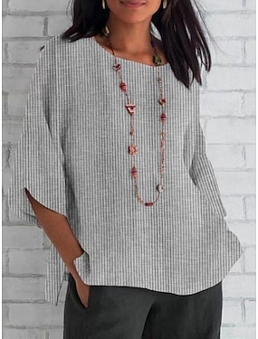 Per donna Camicie di cotone e lino Top estivi Blusa Finto cotone e lino Quotidiano Casual Manica 3/4 Girocollo Top Regolari Nero Azzurro cielo Arancione Albicocca Estate Primavera Autunno