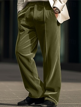 Per uomo Pantaloni Pantaloni Eleganti Pantaloni di Velluto Tasca Frontale Gamba Dritta Semplice Comodità Lunghezza intera Matrimonio Affari Quotidiano Moda Chic & Moderno Blu Reale Verde Inelastico