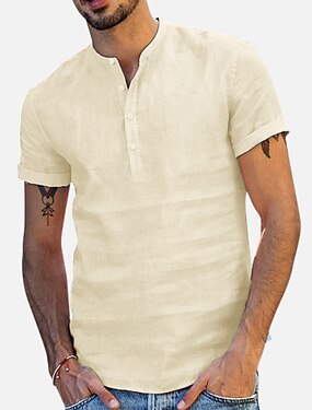 Per uomo T-shirt da escursionismo Camicia da escursionismo Camicia Henley Scollo a V Top Esterno Asciugatura Rapida Leggero Confortevole Traspirante Estate Primavera Cotone e Lino Blu chiaro Nero