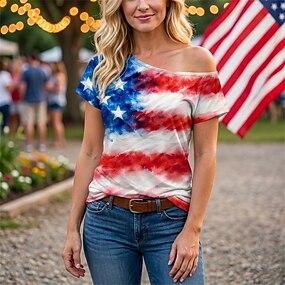 250° anniversario USA Retrò Vintage Anni '80 T-shirt Monospalla Maniche corte Bandiera USA Costume Per donna 4 Luglio Giorno dell'Indipendenza Adulti Maglietta
