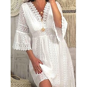 Per donna Abito al ginocchio Abito Bianco Abito in Pizzo Elegante Vintage Moda Manica del polsino svasato Quotidiano All'aperto Spiaggia Vestibilità regolare Semplice Manica 3/4 Scollo a V Bianco