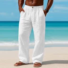Per uomo Pantaloni di Lino Pantaloni Pantaloni Eleganti Pantaloni Estivi Bottoni Tasca Frontale Gamba Dritta Semplice Comodità Traspirante Casuale Quotidiano Ferie Moda Essenziale Nero Bianco