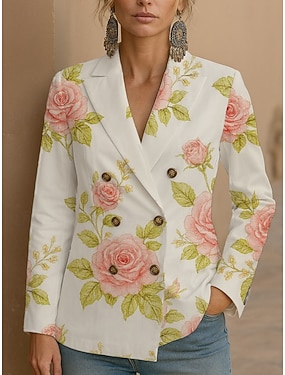 Per donna Blazer Antivento Confortevole Bottoni Elegante Vintage Moda Carino Floreale Casuale Regolare Bavero classico Vestibilità regolare Manica Lunga Capispalla Bianco Rosa Viola Primavera Autunno