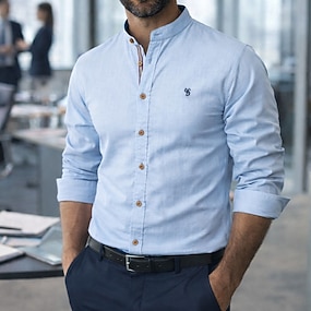 Per uomo Camicia Camicia di lino Camicia Estiva Camicia elegante Camicia con Bottoni Semplice Affari Formale Blu Nero Bianco Blu marino Manica Lunga Colletto Estate Primavera Abbigliamento Ricamato