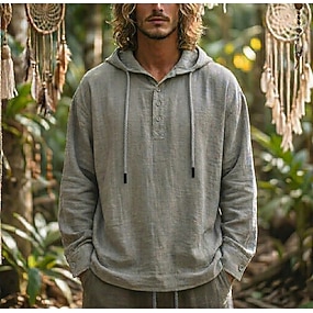 Per uomo Camicia Camicia di lino Camicia popover Camicia Estiva Abbigliamento da spiaggia Camicia con cappuccio Semplice Casuale Vacanza Grigio Manica Lunga Con Cappuccio Estate Primavera