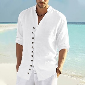 Per uomo Camicia camicia di lino Camicia estiva Abbigliamento mare Camicia con bottoni Liscio Da mare Informale Nero Bianco Rosa Blu Manica lunga Colletto Primavera estate Abbigliamento