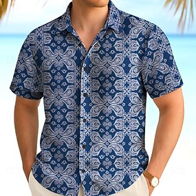 Per uomo Paisley Etnico Camicia Camicia Estiva Camicia con Bottoni Manica Corta Vintage Retrò All'aperto Vacanza Abbigliamento Quotidiano Estate Primavera Collo ripiegato Stampa 3D camicie con